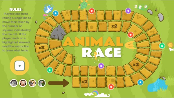 Players take turns rolling a single die to move their token by the number of squares indicated by the die roll. If the player lands on a highlighted element, read the instruction to learn what to do