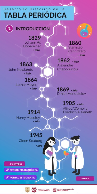 - Identificar la evolución histórica de las aportaciones teóricas para llegar a la tabla periódica actual.