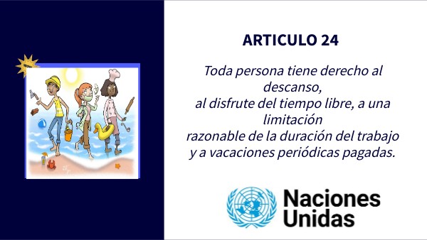 Toda persona tiene derecho al descanso, al disfrute del tiempo libre, a una limitación razonable de la duración del trabajo y a vacaciones periódicas pagadas.