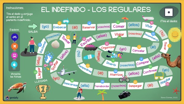 Instrucciones: Tira el dado y conjuga el verbo en el pretérito indefinido.
