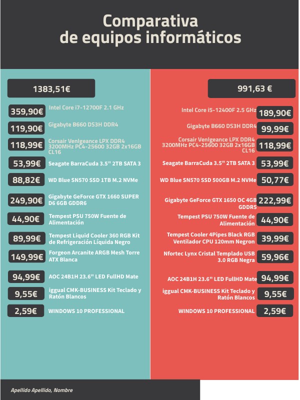 Comparativa de equipos informáticos