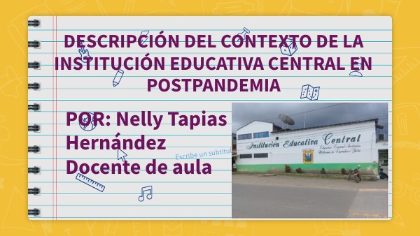 DESCRIPCIÓN DEL CONTEXTO DE LA INSTITUCIÓN EDUCATIVA CENTRAL EN POSTPANDEMIA POR: Nelly Tapias Hernández Docente de aula