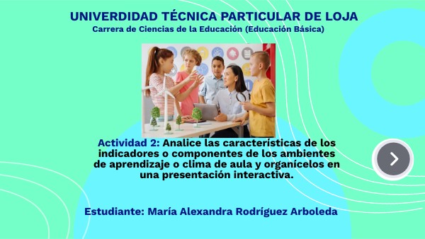 Actividad 2: Analice las características de los indicadores o componentes de los ambientes de aprendizaje o clima de aula y organícelos en una presentación interactiva.