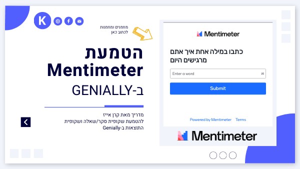 מדריך מאת קרן אייז להטמעת שקופית סקר/שאלה ושקופית התוצאות ב-Genially