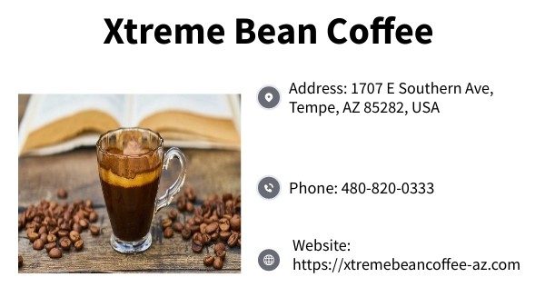 Address: 1707 E Southern Ave, Tempe, AZ 85282, USA Phone: 480-820-0333 Website: https://xtremebeancoffee-az.com