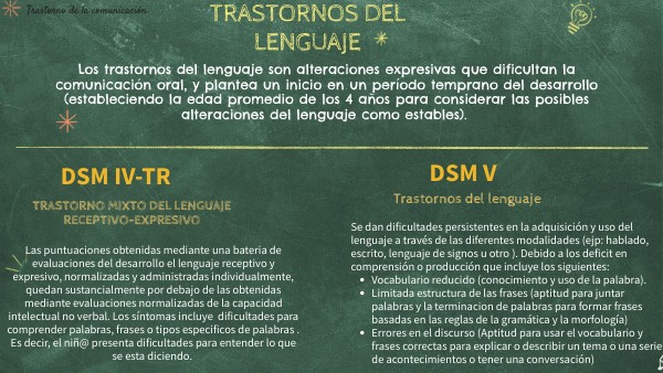 Los trastornos del lenguaje son alteraciones expresivas que dificultan la comunicación oral, y plantea un inicio en un período temprano del desarrollo (estableciendo la edad promedio de los 4 años para considerar las posibles alteraciones del lenguaje como estables).