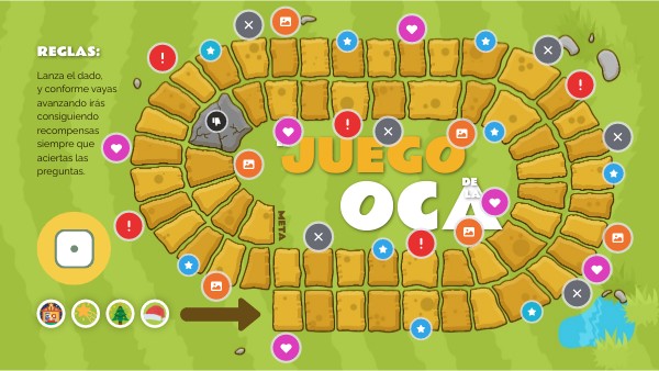 Lanza el dado,y conforme vayas avanzando irás consiguiendo recompensas siempre que aciertas las preguntas.
