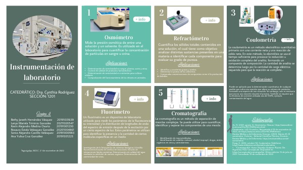 Az, N. (2021, agosto 3). Osmómetro. Nina.az. https://www.wiki.es-es.nina.az/Osm%C3%B3metro.htmlOsmómetro. (s/f). Ecured.cu. Recuperado el 19 de noviembre de 2022, de https://www.ecured.cu/Osm%C3%B3metroRevista Médica y de Enfermería Ocronos. (2020, febrero 8). El osmómetro. Ocronos - Editorial Científico-Técnica; Ocronos - Revista Médica y de Enfermería. https://revistamedica.com/el-osmometro/ Parag, K. (2014, octubre 12). Coulometria. SlideServe. https://www.slideserve.com/kamal/coulometria • "Cromatografía". Autor: Dianelys Ondarse Álvarez. De: Argentina. Para: Concepto.de. Disponible en: https://concepto.de/cromatografia/. Última edición: 15 de julio de 2021. Consultado: 19 de noviembre de 2022