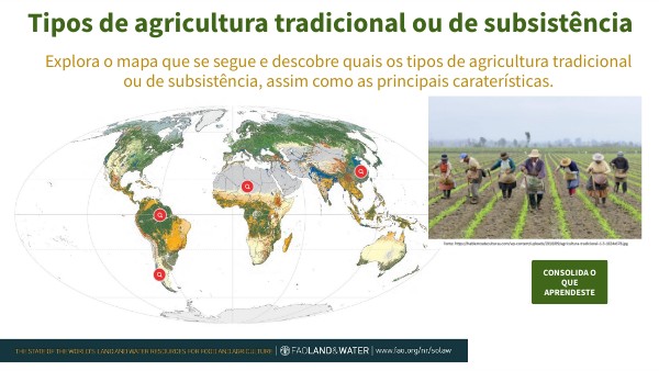 Explora o mapa que se segue e descobre quais os tipos de agricultura tradicional ou de subsistência, assim como as principais caraterísticas.