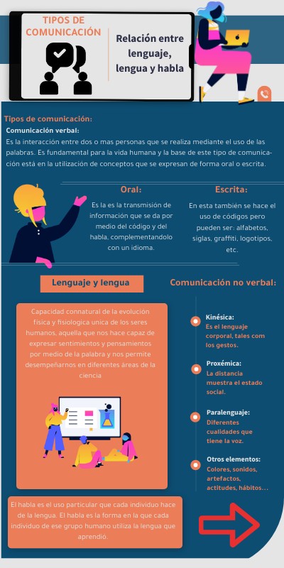 Comunicación verbal:Es la interacción entre dos o mas personas que se realiza mediante el uso de las palabras. Es fundamental para la vida humana y la base de este tipo de comunica- ción está en la utilización de conceptos que se expresan de forma oral o escrita.