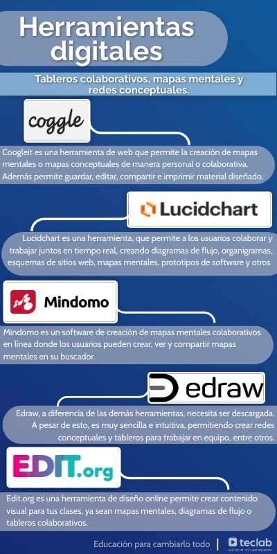 Tableros colaborativos, mapas mentales y redes conceptuales.