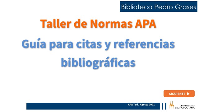 Taller de Normas APA Guía para citas y referencias bibliográficas