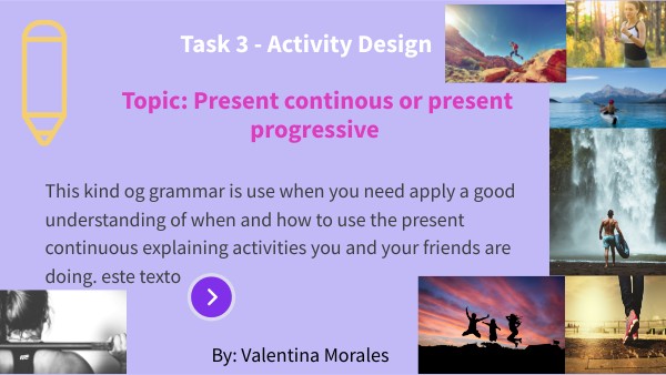 Task 3 - Activity Design Topic: Present continous or present progressive