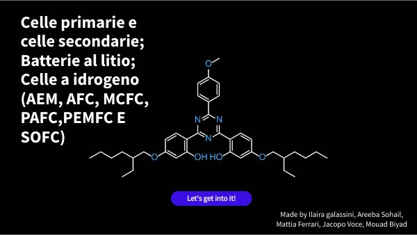 Celle primarie e celle secondarie; Batterie al litio; Celle a idrogeno (AEM, AFC, MCFC, PAFC,PEMFC E SOFC)