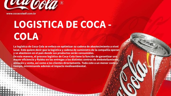 La logística de Coca-Cola se enfoca en optimizar su cadena de abastecimiento a nivel local. Esto quiere decir que la logística y cadena de suministro de la compañía operan y se abastecen en el país donde sus productos serán consumidos. De esta manera, el proceso logístico de Coca-Cola tiene la función de garantizar una mayor eficiencia y fluidez en las entregas a los distintos centros de embotellamiento, almacén y venta, así como a los clientes directamente. Todo esto a un menor costo y tiempo, minimizando además el impacto medioambiental.