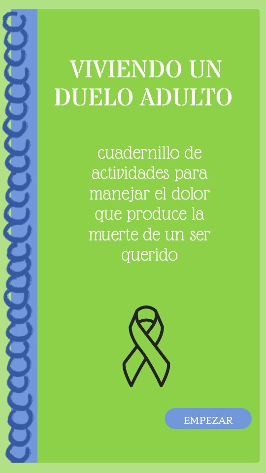 La creación de este cuadernillo está dirigido a aquellas personas adultas que han perdido a una persona cercana muy querida y significativa. Dicho cuadernillo realizado desde una perspectiva con mucha empatía y acompañamiento en este difícil proceso. Proceso del cual, numerosas veces las personas que tienen una perdida se encuentran perdidas e incomprendidas y con sentimientos y emociones que divagan sin un rumbo establecido.Entonces es así que a continuación se presentan 10 actividades las cuales pretender ayudar a identificar aquello que se está sintiendo, darles un origen y como se puede re direccionar aquellas emociones y sentimientos de una mejor manera. Lograr que se desarrolle poco a poco una buena relación con lo sucedido y asimilarlo del mejor modo, así como practicar el autocuidado que es muy importante tener en cuenta en este tipo de situaciones. El proceso del duelo va de afuera hacia dentro, del silencio a la palabra, de la oscuridad a la luz. Y esa tan solo es una primera aproximación.