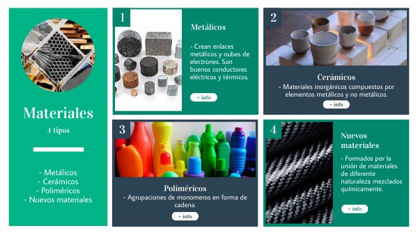 - Metálicos- Cerámicos - Poliméricos - Nuevos materiales
