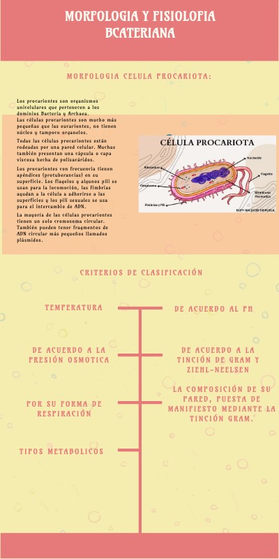 Los procariontes son organismos unicelulares que pertenecen a los dominios Bacteria y Archaea.Las células procariontes son mucho más pequeñas que las eucariontes, no tienen núcleo y tampoco organelos. Todas las células procariontes están rodeadas por una pared celular. Muchas también presentan una cápsula o capa viscosa hecha de polisacáridos. Los procariontes con frecuencia tienen apéndices (protuberancias) en su superficie. Los flagelos y algunos pili se usan para la locomoción, las fimbrias ayudan a la célula a adherirse a las superficies y los pili sexuales se usa para el intercambio de ADN. La mayoría de las células procariontes tienen un solo cromosoma circular. También pueden tener fragmentos de ADN circular más pequeños llamados plásmidos.