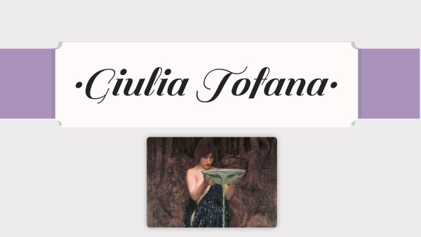 Giulia Tofana fue una química y cosmetóloga romana que vivió en el siglo XVII y que era descrita como una mujer bella. Tenía su propio negocio de cosméticos con tiendas en Italia y en Nápoles, donde vivía con su familia. Su creación más destacada, la cual vendía como producto fue el "agua tofana".
