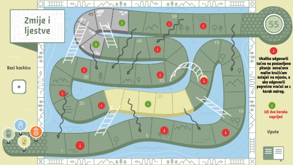 Ukoliko odgovoriš točno na postavljeno pitanje označeno malim kružićem ostaješ na mjestu, a ako odgovoriš pogrešno vračaš se 1 korak natrag.