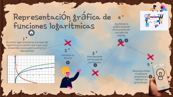 En primer lugar analicemos si la base del logaritmo es un número real mayor que 1 (creciente) o se encuentra entre 0 y 1 (decreciente)