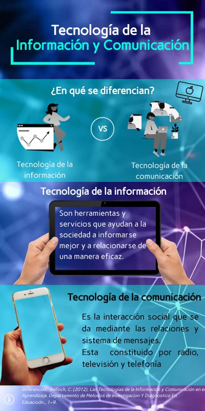 Referencias: Belloch, C. (2012). Las Tecnologías de la Información y Comunicación en elAprendizaje. Departamento de Metodos de Investigacion Y Diagnostico En Eduacioón., 1–9.