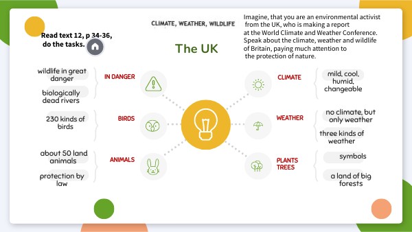 Imagine, that you are an environmental activist from the UK, who is making a report at the World Climate and Weather Conference. Speak about the climate, weather and wildlife of Britain, paying much attention to the protection of nature.