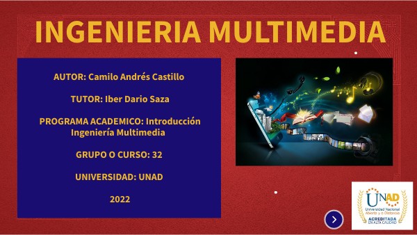 AUTOR: Camilo Andrés Castillo TUTOR: Iber Dario Saza PROGRAMA ACADEMICO: Introducción Ingeniería Multimedia GRUPO O CURSO: 32 UNIVERSIDAD: UNAD 2022