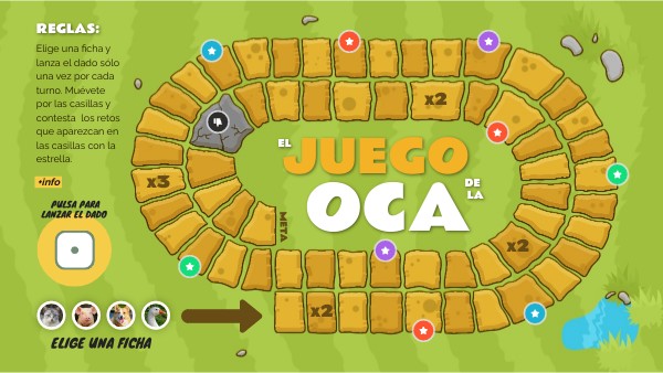 Elige una ficha y lanza el dado sólo una vez por cada turno. Muévete por las casillas y contesta los retos que aparezcan en las casillas con la estrella.