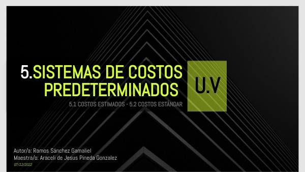 Tambien sobre el sistema de costos predeterminados que es el tema principal de esta unidad donde se desprender los costos estandar y estimados. Algo importante de los costos predeterminados son sus objetivos y unos de sus objetivos es que ayudan a que la gerencia pueda tomar buenas decisiones en su control de costos de una empresa.