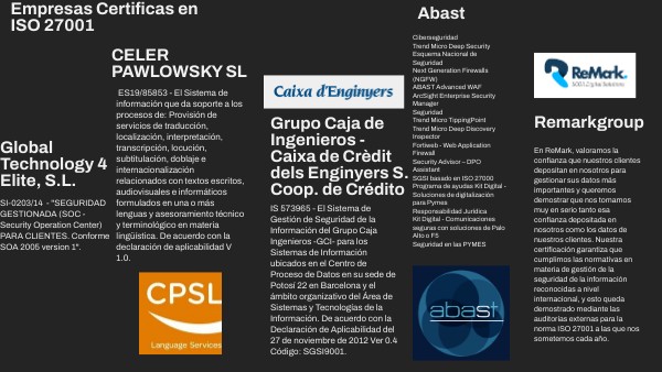 En ReMark, valoramos la confianza que nuestros clientes depositan en nosotros para gestionar sus datos más importantes y queremos demostrar que nos tomamos muy en serio tanto esa confianza depositada en nosotros como los datos de nuestros clientes. Nuestra certificación garantiza que cumplimos las normativas en materia de gestión de la seguridad de la información reconocidas a nivel internacional, y esto queda demostrado mediante las auditorías externas para la norma ISO 27001 a las que nos sometemos cada año.