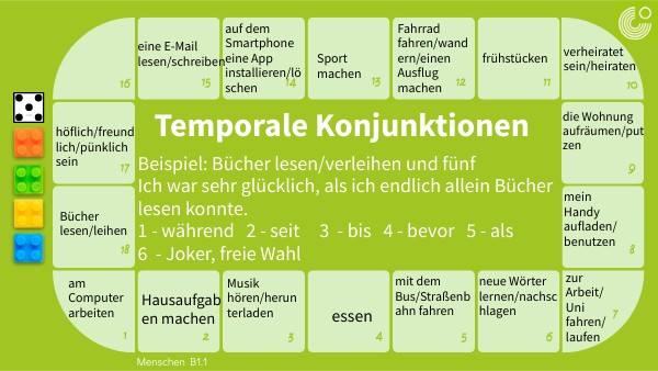 Beispiel: Bücher lesen/verleihen und fünf Ich war sehr glücklich, als ich endlich allein Bücher lesen konnte. 1 - während 2 - seit 3 - bis 4 - bevor 5 - als 6 - Joker, freie Wahl