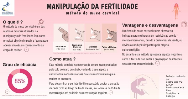 O método do muco cervical é um dos metodos naturais utilizados na manipulaçao da fertilidade.Tem como principal objetivo impedir a fecundaçao apenas através do conhecimento do corpo da mulher.