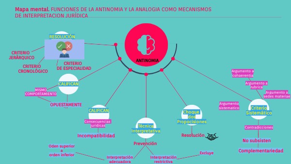 Mapa mental. FUNCIONES DE LA ANTINOMIA Y LA ANALOGIA COMO MECANISMOS DE INTERPRETACION JURÍDICA