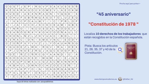 Constitución de 1978. Derechos laborales, sopa de letras