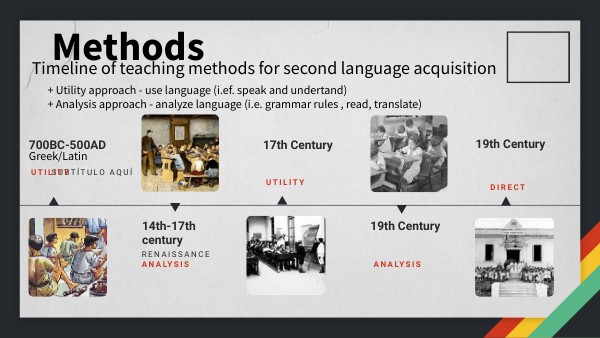 + Analysis approach - analyze language (i.e. grammar rules , read, translate)