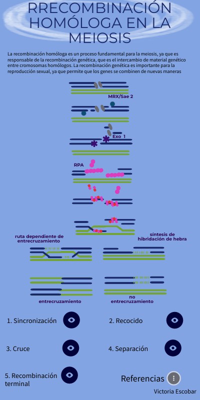 Karp, G. (2023). Biología molecular y celular (8ª ed.). Pearson. Li, Y., & Zhang, Y. (2022). Molecular mechanisms of homologous recombination in meiosis. Cell Research, 32(1), 2-18. Zhang, Y., & Li, Y. (2021). The role of homologous recombination in meiosis. Frontiers in Genetics, 12, 655455. de Vries, T., & Keeney, S. (2020). The regulation of homologous recombination in meiosis. Nature Reviews Genetics, 21(11), 719-733. Collado-Vides, J., & West, S. (2019). Homologous recombination in meiosis: a complex and dynamic process with diverse functions. Nature Reviews Genetics, 20(1), 39-51.