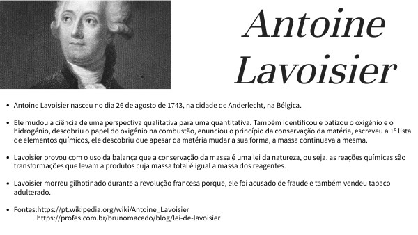 - Fontes:https://pt.wikipedia.org/wiki/Antoine_Lavoisier