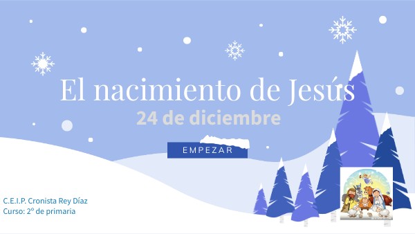 A través de una presentación genially, cuento la historia del nacimiento de Jesús a través de un cuento con el fin de que los niños aprendan de una manera más lúdica y divertida a través de imágenes y un vídeo explicativo. Al final, una actividad en la que se pondrá a prueba los conocimientos adquiridos.
