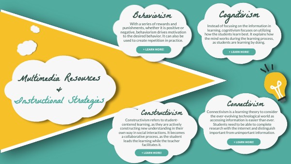Instead of focusing on the information in learning, cognitivism focuses on utilizing how the students learn best. It explains how the mind works during the learning process, as students are learning by doing.