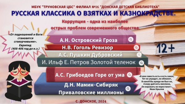 «В ком совесть есть и есть закон, Тот не украдет, не обманет, В какой бы нужде ни был он, А вору дай хоть миллион, Он воровать не перестанет». Иван Крылов