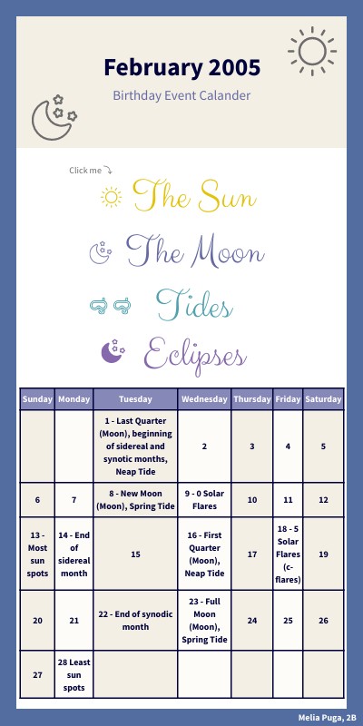 Saddly I did not have any Lunar Events that occured during the month of Februrary in 2005.