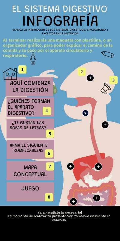 Al terminar realizarás una maqueta con plastilina, o un organizador gráfico, para poder explicar el camino de la comida y su paso por el aparato circulatorio y respiratorio.