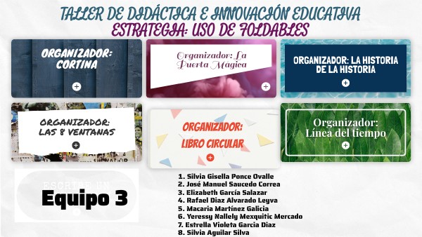 Los plegados (foldables) actúan como organizadores gráficos 3D. Algunos llaman al proceso como plegado de papel. Podríamos llamarlos también como Origami Pedagógico. Como con los mapas conceptuales, trabajan en la motivación y entrega de aprendizaje significativo.Este organozador permite utilizar el formato para organizar hechos de forma cronológica.