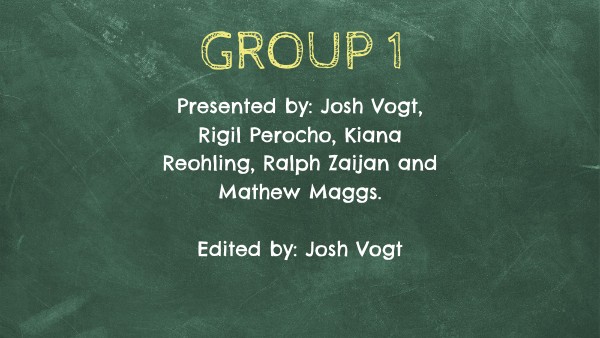 Group Members: Josh Vogt, Rigil Perocho, Kiana Reohling, Ralph Zaijan and Mathew Maggs.Edited by: Josh Vogt