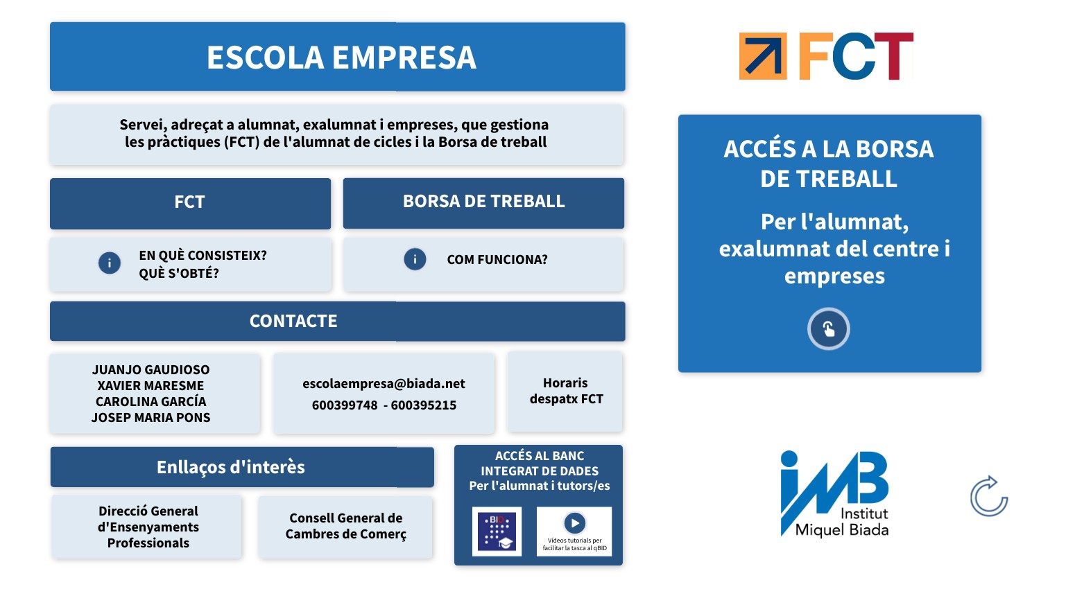 Servei, adreçat a alumnat, exalumnat i empreses, que gestiona les pràctiques (FCT) de l'alumnat de cicles i la Borsa de treball
