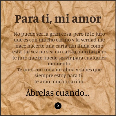 No puede ser la gran cosa, pero te lo juro que es con mucho cariño y la verdad me nace hacerte una carta tan linda como esta, tal vez no sea un carta como tal pero te juro que te puede servir para cualquier momento. Te amo con toda mi alma y sabes que siempre estoy para ti. te amo mucho cariño