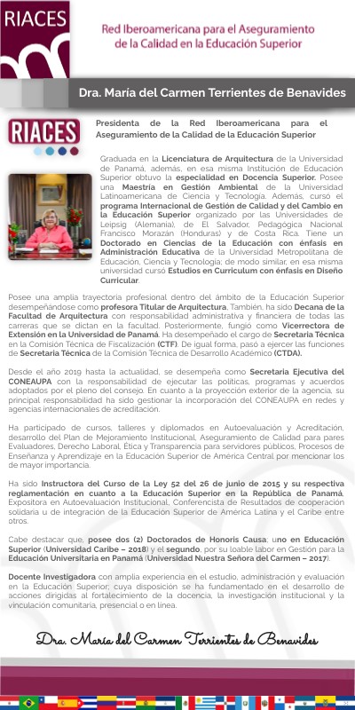 Presidenta de la Red Iberoamericana para el Aseguramiento de la Calidad de la Educación Superior