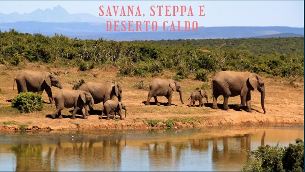 La savana è costituita principalmente da erbe alte con pochi alberi. Presenta un clima subequatoriale, con temperature sopra i 20 gradi centigradi e due stagioni: una arida e una piovosa. La vegetazione è costituita da graminacee e da grandi alberi isolati. Si presentano quattro tipi di savane: con sola erba, con erba e arbusti; con erba, alberi sparsi e cespugli e infine con erba e boscaglia. La savana è il territorio ideale sia per grandi erbivori, come gli elefanti, sia per i grandi predatori, come i leoni. E' un tipico ambiente dell'Africa: si trova a sud e a nord della foresta pluviale e sulla costa orientale. Nel mondo sono presenti savane intorno alla foresta amazzonica e in India. Quindi, si diffonde su terreni non adatti all'agricoltura. Per questo motivo, questo ambiente non ha subito distruzioni, anche se è minacciato dal turismo, dalla caccia e dall'espansione urbana.