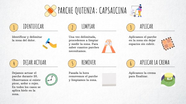Dejamos actuar el parche durante 1H. Observamos si existe picor, ardor o rojez. En todos los casos se aplica hielo en la zona.